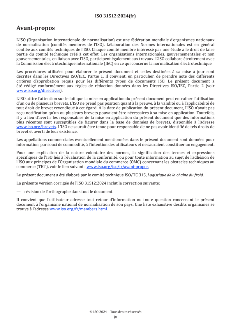 ISO 31512:2024 - Services logistiques de la chaîne du froid dans le secteur du commerce interentreprises (B to B) — Cadre directeur et exigences pour le stockage et le transport Released:14. 03. 2025