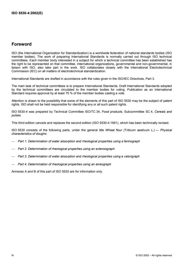 ISO 5530-4:2002 - Wheat flour (Triticum aestivum L.) -- Physical characteristics of doughs