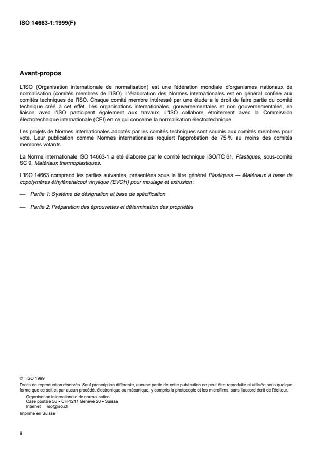 ISO 14663-2:1999, Plastiques — Matériaux à base de copolymères éthylène/alcool vinylique (EVOH) pour moulage