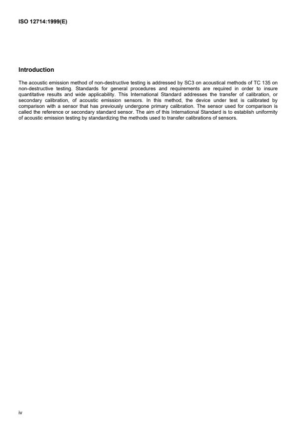 Keywords: ISO 12714:1999, acoustic emission, secondary calibration, AE sensors, Rayleigh waves, test block, reference sensor, non-destructive testing, frequency response.