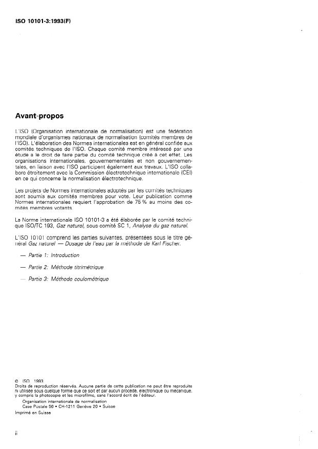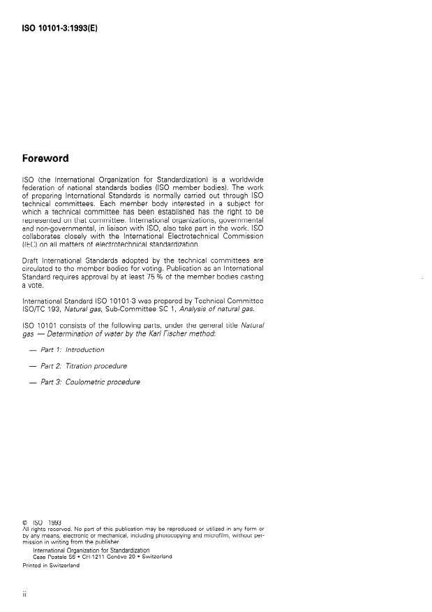 ISO 10101-3:1993 - Natural gas -- Determination of water by the Karl Fischer method