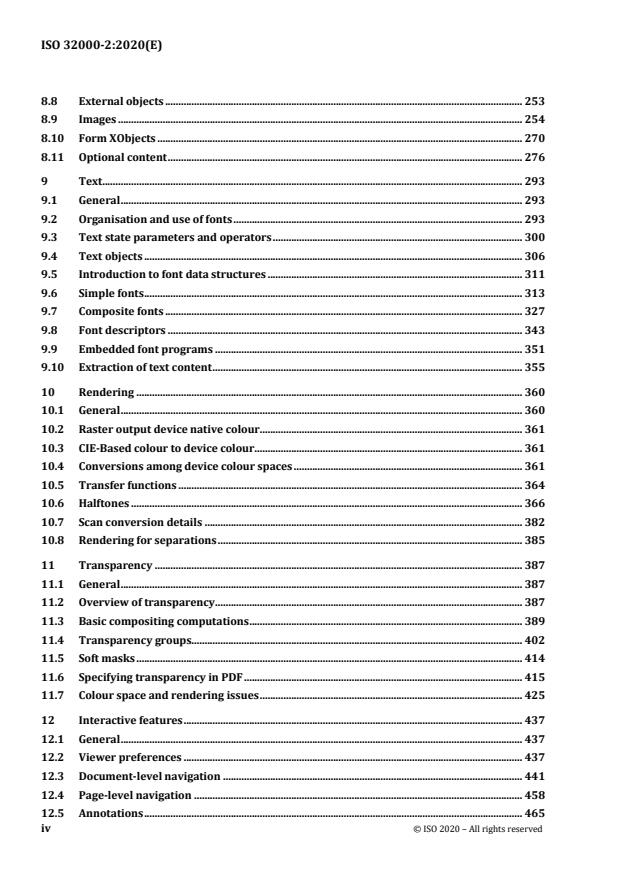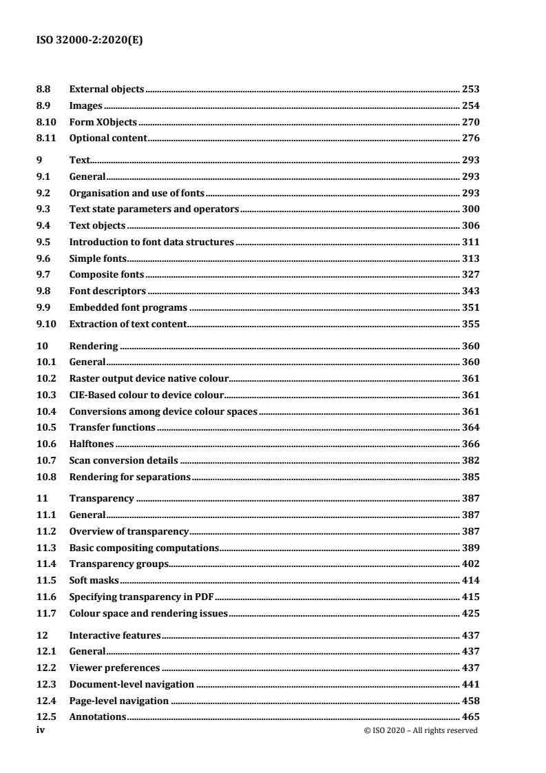 ISO 32000-2 organizes the PDF 2.0 specification into comprehensive technical areas. Important topics covered include: