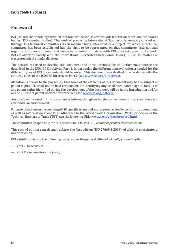 ISO 27668-1:2016 is a standard published by the International Organization for Standardization (ISO). Its full title is "Gel ink ball pens and refills — Part 1: General use". This standard covers: ISO 27668-1:2016 establishes minimum quality requirements for gel ink ball pens (refillable and non-refillable) and refills for general use. Additional requirements for gel ink ball pens for documentary use are given in ISO 27668‑2.