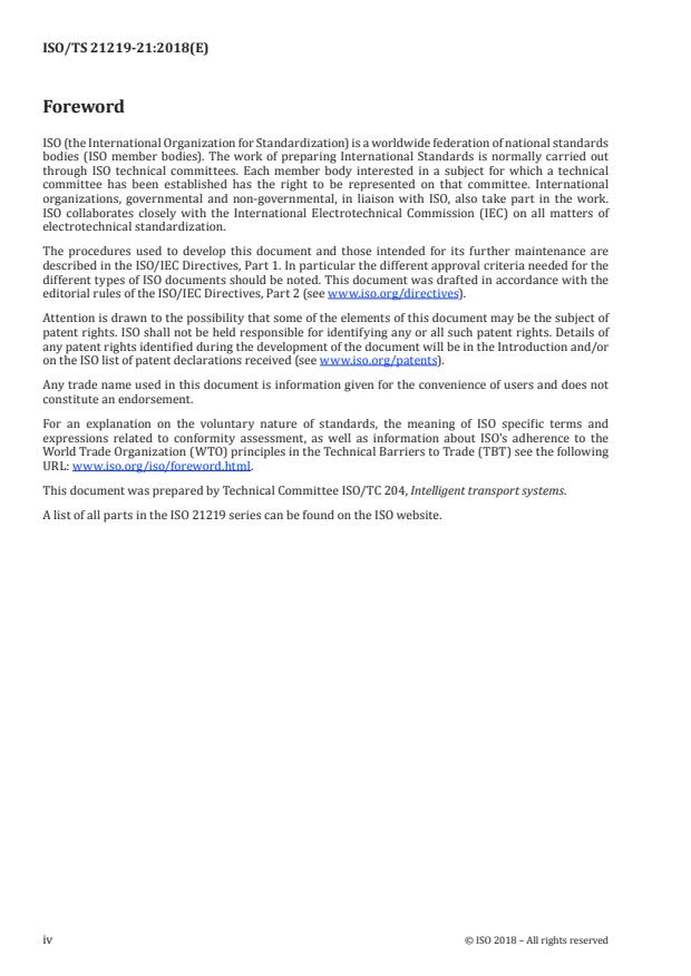 ISO/TS 21219-21:2018 is classified under the following ICS (International Classification for Standards) categories: 03.220.01 - Transport in general; 35.240.60 - IT applications in transport. The ICS classification helps identify the subject area and facilitates finding related standards.