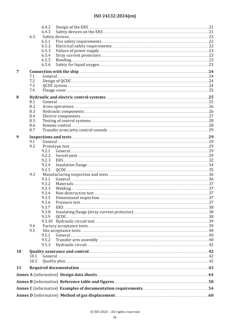 ISO 24132:2024 establishes design, minimum safety, inspection and testing requirements for marine transfer arms used in ship-to-shore transfer of liquefied hydrogen (LH2) at onshore LH2 terminals. The standard focuses on hard pipe type transfer systems (while noting that vacuum‑insulated hose systems can be considered) and covers product line design, materials, safety systems and commissioning tests. It addresses power and control systems at a high level but does not prescribe every detail for standard off‑the‑shelf parts and fittings.