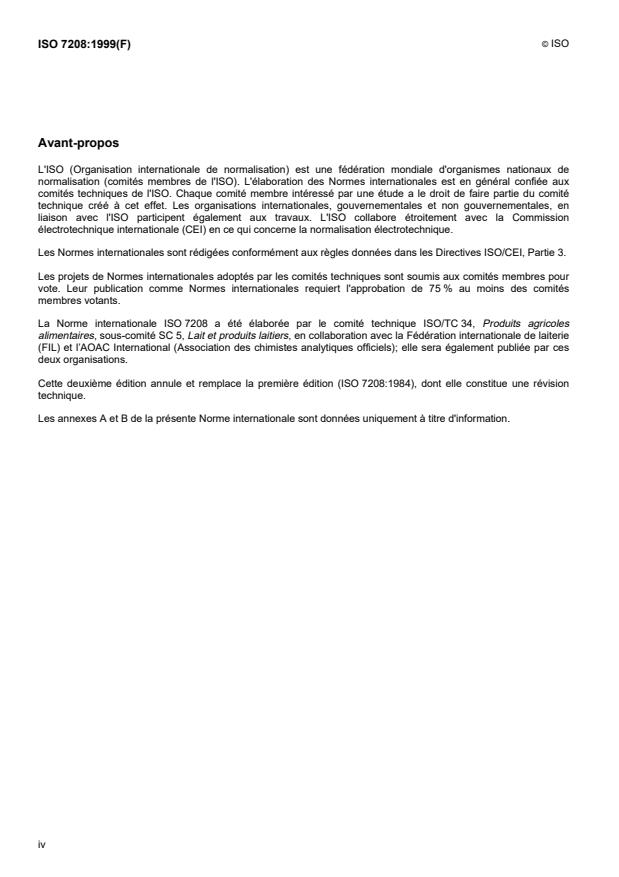 ISO 7208:1999 is a standard published by the International Organization for Standardization (ISO). Its full title is "Skimmed milk, whey and buttermilk — Determination of fat content — Gravimetric method (Reference method)". This standard covers: Skimmed milk, whey and buttermilk — Determination of fat content — Gravimetric method (Reference method)