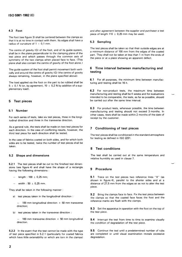 ISO 5981:1982 is a standard published by the International Organization for Standardization (ISO). Its full title is "Rubber or plastics coated fabrics — Determination of flex abrasion". This standard covers: Rubber or plastics coated fabrics — Determination of flex abrasion