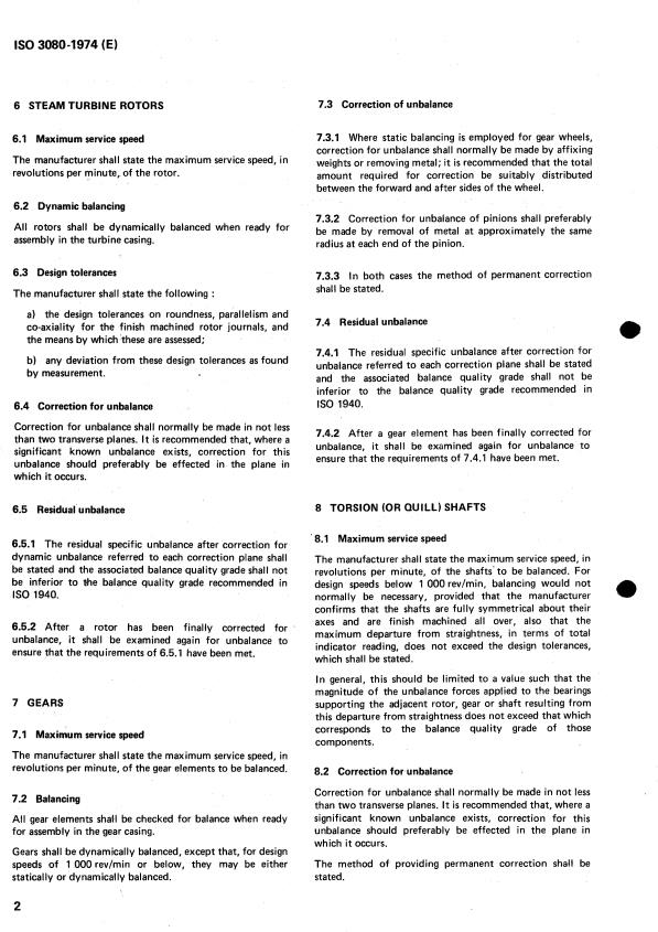ISO 3080:1974 is a standard published by the International Organization for Standardization (ISO). Its full title is "Guide for the mechanical balancing of marine main steam turbine machinery for merchant service". This standard covers: Guide for the mechanical balancing of marine main steam turbine machinery for merchant service