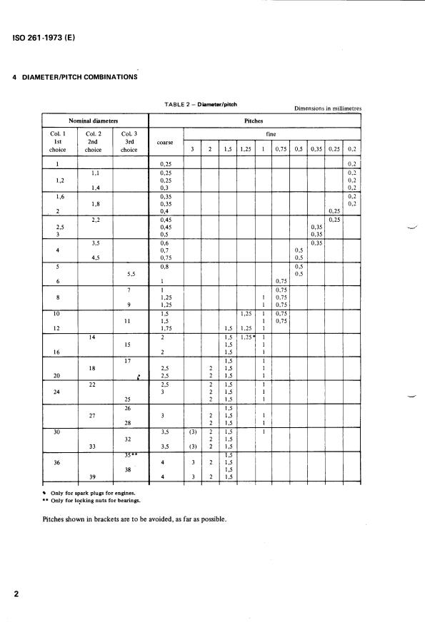 ISO 261:1973 - ISO general purpose metric screw threads -- General plan