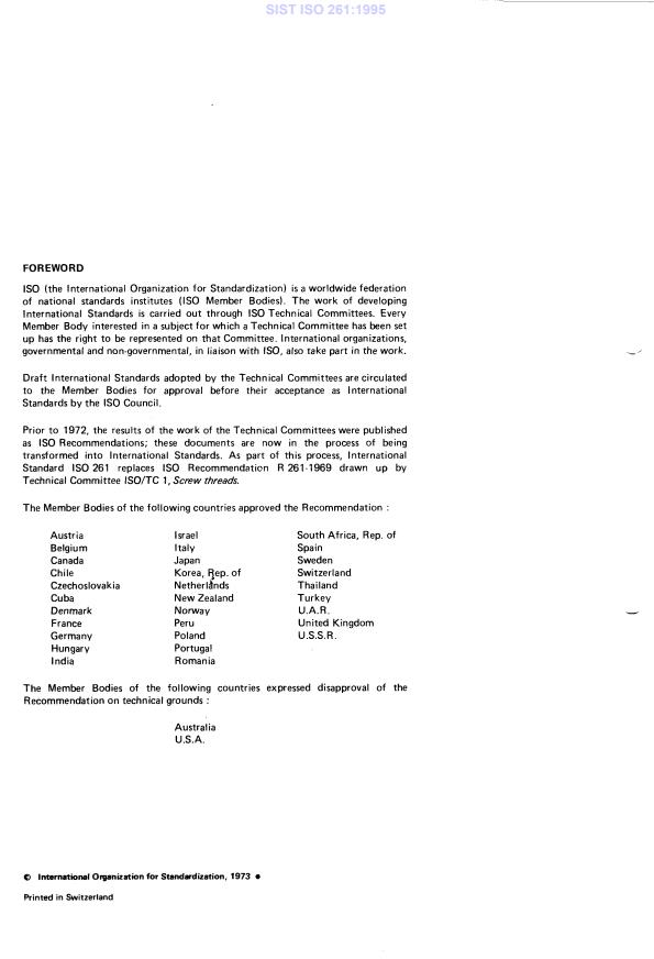 Standard IS0 261 replaces IS0 Recommendaticn R 261-1969 drawn up by