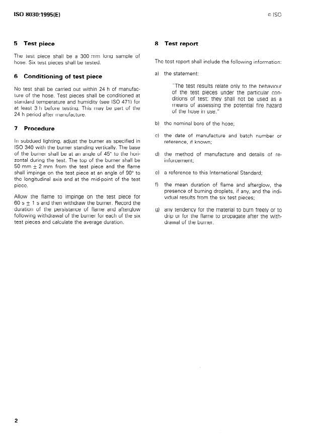 ISO 8030:1995 - Rubber and plastics hoses -- Method of test for flammability