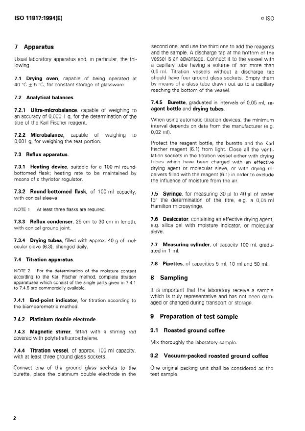 Keywords: ISO 11817:1994, roasted ground coffee, moisture content, Karl Fischer method, reference method, coffee quality control, moisture determination, ISO 760, ISO 5725.