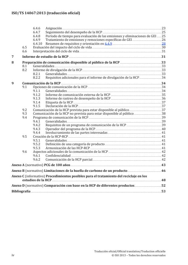 ISO/TS 14067:2013 specifies principles, requirements and guidelines for the quantification and communication of the carbon footprint of a product (CFP), based on International Standards on life cycle assessment (ISO 14040 and ISO 14044) for quantification and on environmental labels and declarations (ISO 14020, ISO 14024 and ISO 14025) for communication. Requirements and guidelines for the quantification and communication of a partial carbon footprint of a product (partial CFP) are also provided. ISO/TS 14067:2013 is applicable to CFP studies and different options for CFP communication based on the results of such studies. Where the results of a CFP study are reported according to ISO/TS 14067:2013, procedures are provided to support both transparency and credibility and also to allow for informed choices. ISO/TS 14067:2013 also provides for the development of CFP-product category rules (CFP-PCR), or the adoption of product category rules (PCR) that have been developed in accordance with ISO 14025 and that are consistent with ISO/TS 14067:2013. ISO/TS 14067:2013 addresses only one impact category: climate change. Offsetting is outside of the scope of ISO/TS 14067:2013.