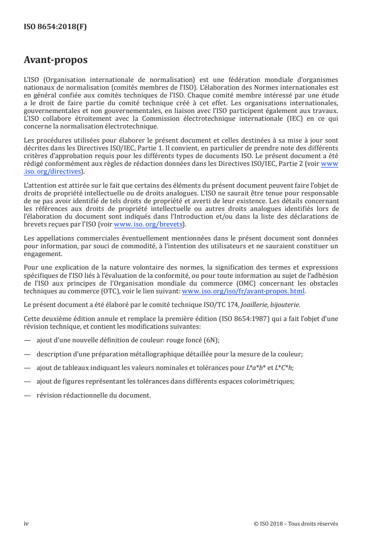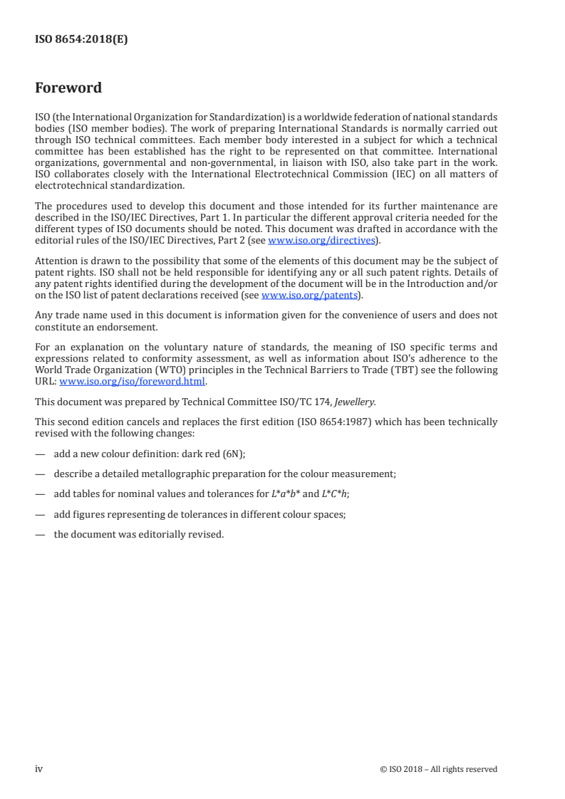 ISO 8654:2018 - Jewellery -- Colours of gold alloys -- Definition, range of colours and designation