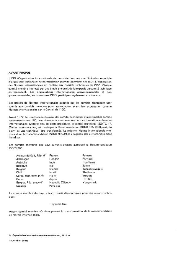 ISO/TC 47, Chemistry, has reviewed IS0 Recommendation R 905-1968 and found