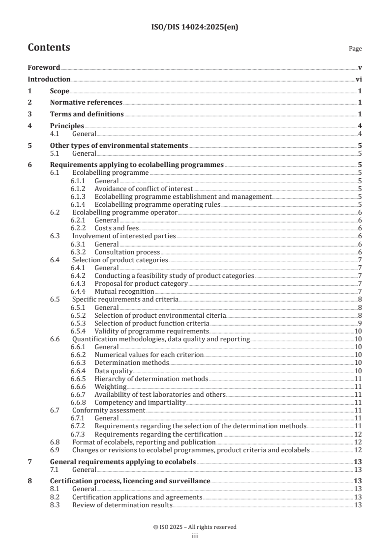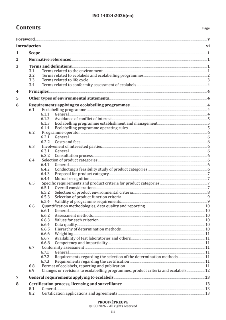 ISO 14024:2018 establishes the principles and procedures for developing Type I environmental labelling programmes, including the selection of product categories, product environmental criteria and product function characteristics, and for assessing and demonstrating compliance. ISO 14024:2018 also establishes the certification procedures for awarding the label.