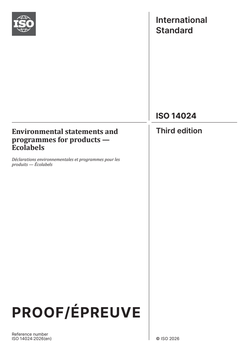 ISO/PRF 14024 - Déclarations environnementales et programmes pour les produits — Écolabels/10/2025
