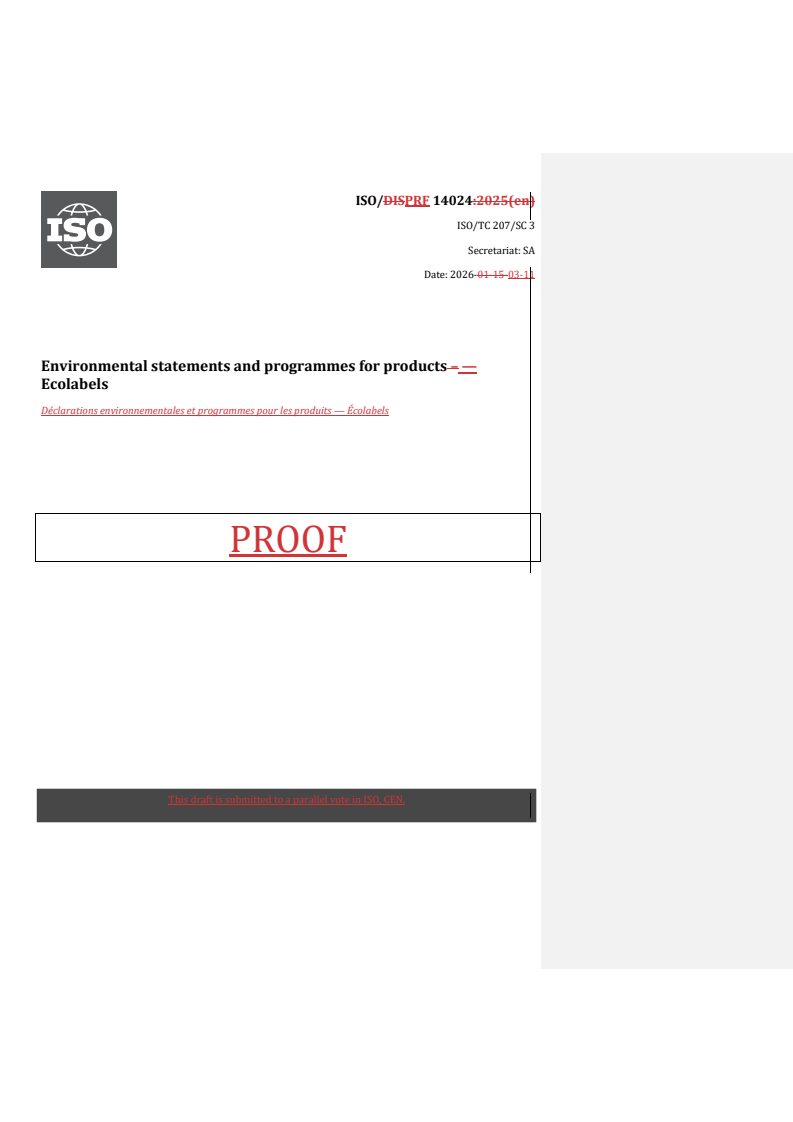 REDLINE ISO/PRF 14024 - Environmental statements and programmes for products — Ecolabels