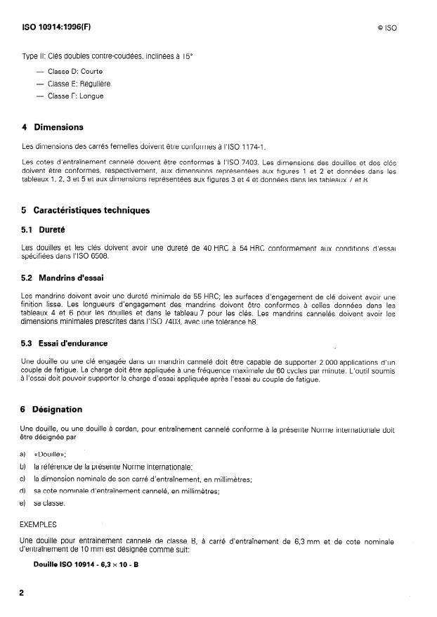 Les cotes d’entraînement cannelé doivent être conformes à I’ISO 7403. Les dimensions des douilles et des clés