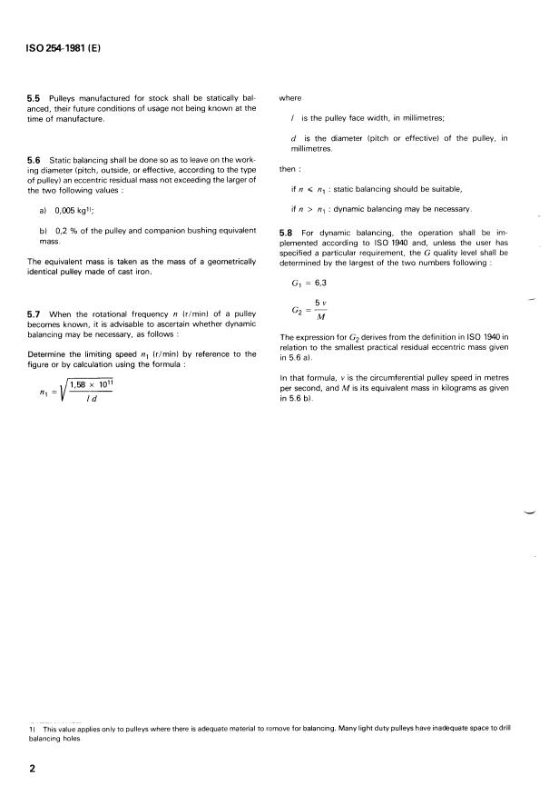 ISO 254:1981 - Quality, finish and balance of transmission pulleys Released:7/1/1981