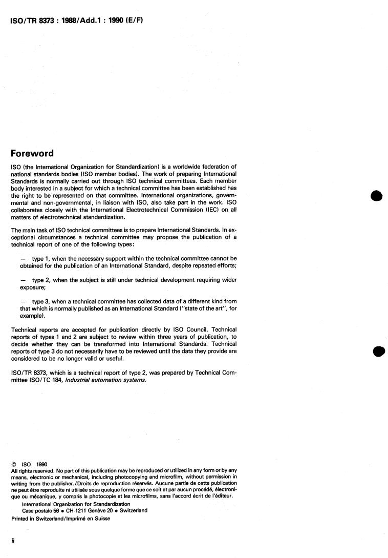 ISO/TR 8373 : 19WAdd.l : 1990 (E/F)