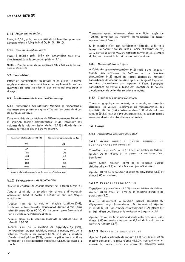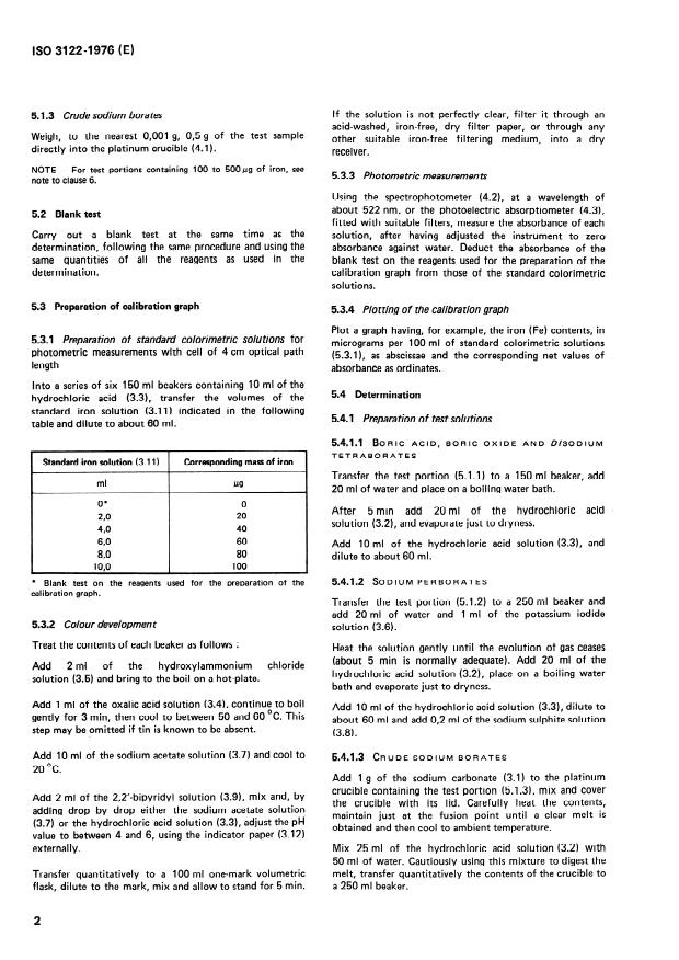 ISO 3122:1976 - Boric acid, boric oxide, disodium tetraborates, sodium perborates and crude borates for industrial use -- Determination of iron content -- 2,2'- Bipyridyl photometric method
