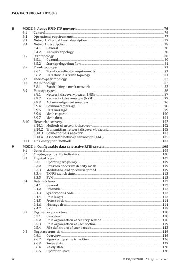 ISO/IEC 18000-4:2018 specifies technical attributes and protocol elements including: