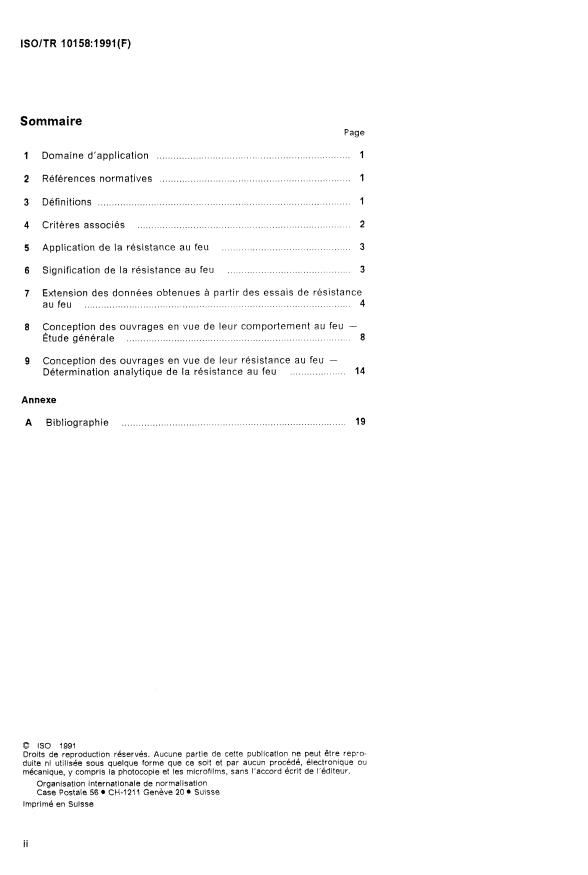 ISO/TR 10158:1991 - Principes et analyse servant de base aux méthodes de calcul portant sur la résistance au feu des éléments structuraux