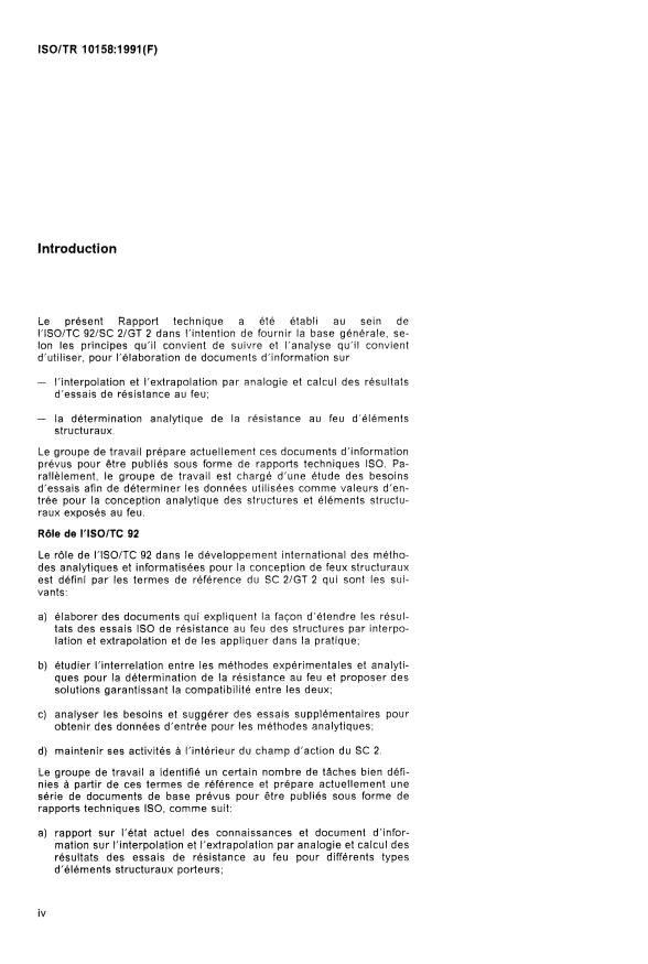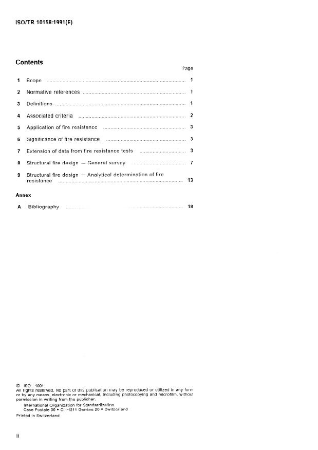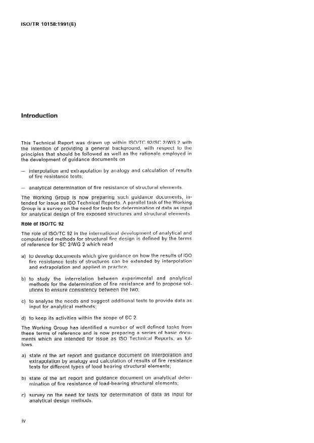 ISO/TR 10158:1991 is a technical report published by the International Organization for Standardization (ISO). Its full title is "Principles and rationale underlying calculation methods in relation to fire resistance of structural elements". This standard covers: Clause 3 contains explanations of some of the basic terms employed in the development and application of the concept of fire resistance. Clause 4 discusses the significance of fire resistance. Clause 7 covers the development and application of calculation methods which are associated with the results obtained from fire resistance tests. Clause 8 gives a survey of the methods presently available for structural fire design, followed by an enumeration of the precepts that appear to be applicable to their use. Clause 9 deals in more detail with the development and application of calculation methods which are directly related to an analytical determination of fire resistance.