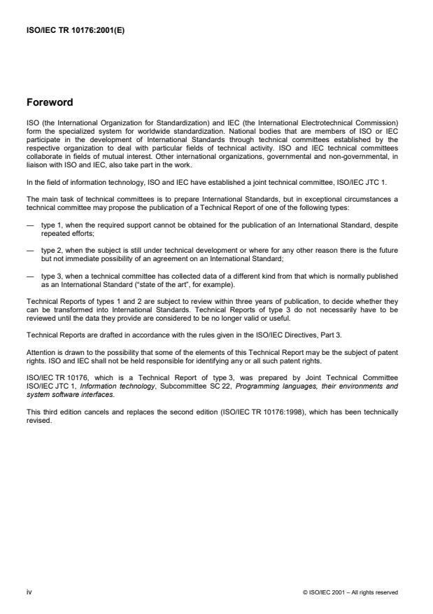 ISO/IEC TR 10176:2001 is a technical report published by the International Organization for Standardization (ISO). Its full title is "Information technology — Guidelines for the preparation of programming language standards". This standard covers: Information technology — Guidelines for the preparation of programming language standards