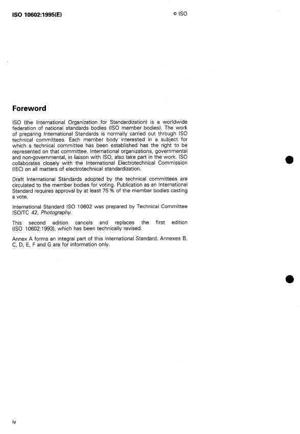 ISO 10602:1993 is a standard published by the International Organization for Standardization (ISO). Its full title is "Photography — Processed silver-gelatin type black-and-white film — Specifications for stability". This standard covers: Photography — Processed silver-gelatin type black-and-white film — Specifications for stability