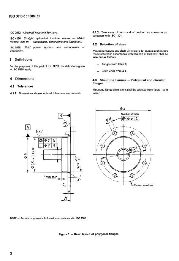 Hydraulic fluid power — Positive displacement pumps and motors — Dimensions and identification code for mounting flanges and shaft ends — Part 3: Polygonal flanges (including circular flanges)