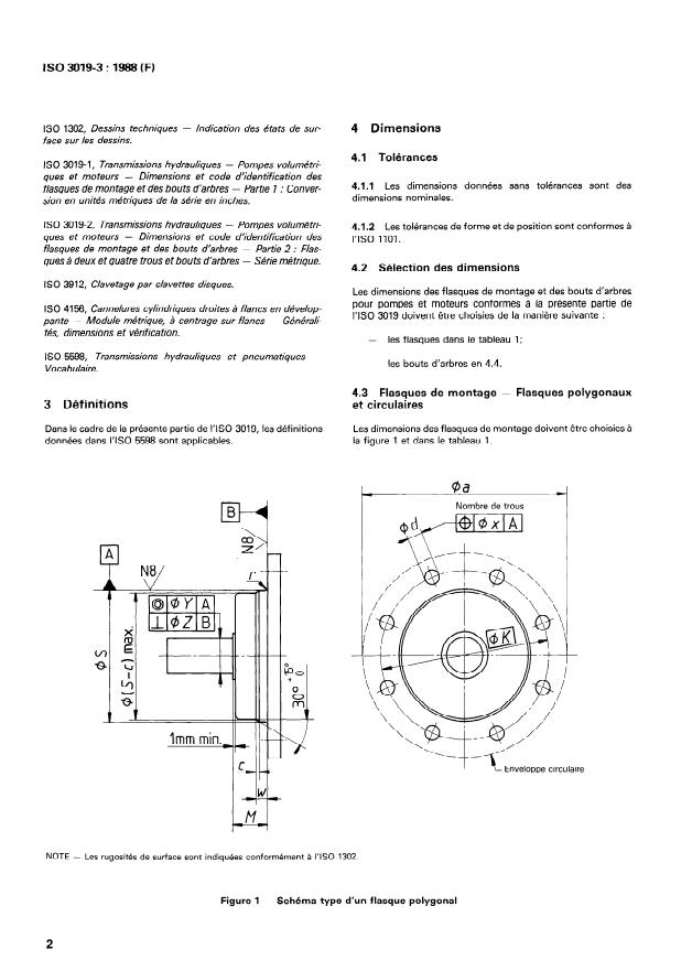 Transmissions hydrauliques — Pompes volumétriques et moteurs — Dimensions et code d'identification des flasques de montage et des bouts d'arbres — Partie 3: Flasques polygonaux (y compris les flasques circulaires)