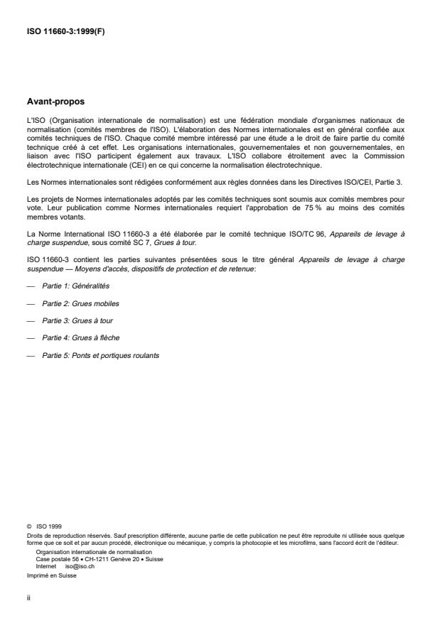 La Norme International ISO 11660-3 a été élaborée par le comité technique ISO/TC 96, Appareils de levage à