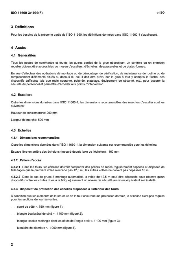 Appareils de levage à charge suspendue — Moyens d'accès, dispositifs de protection et de retenue — Partie 3: Grues à tour