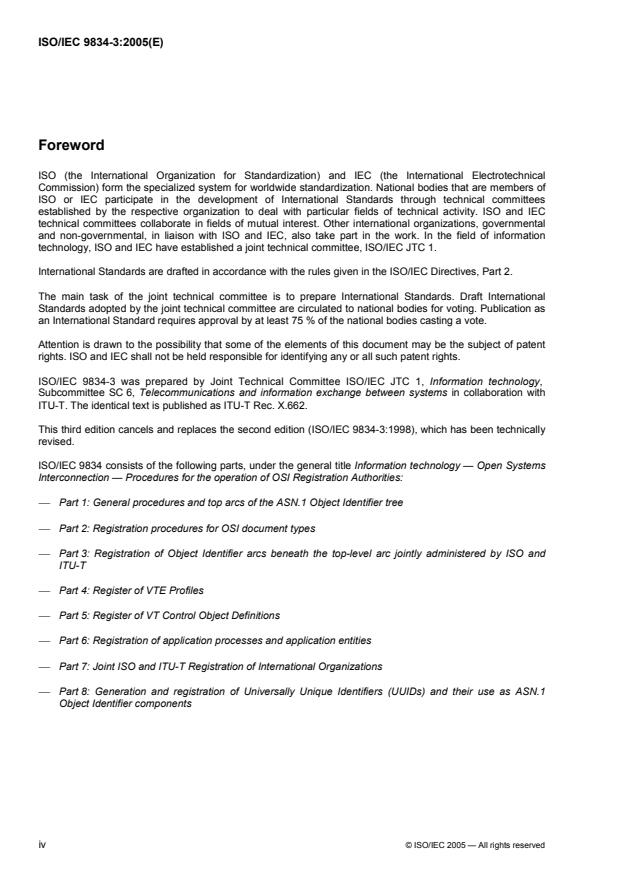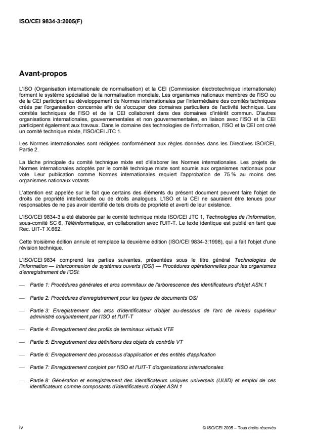 Cette troisième édition annule et remplace la deuxième édition (ISO/CEI 9834-3:1998), qui a fait l'objet d'une