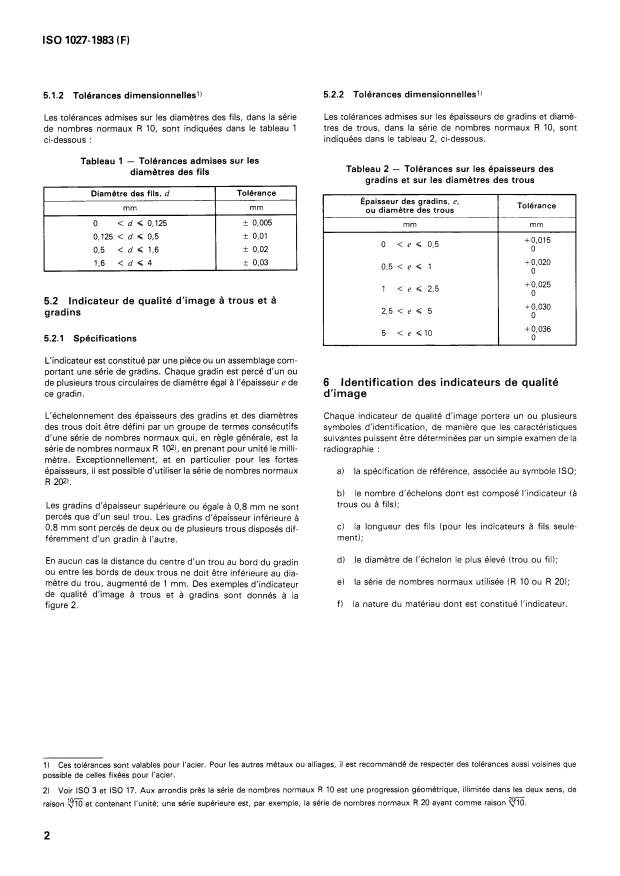 ISO 1027:1983 - Indicateurs de qualité d'image radiographique pour les essais non destructifs -- Principes et identification