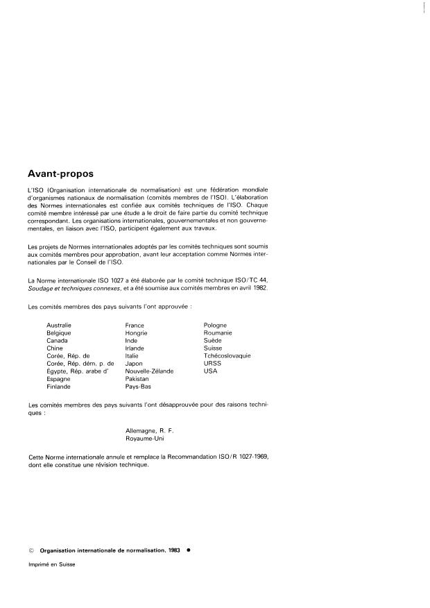 U CDU 621.791 : 778.33 Ref. no : IS0 1027-1983 (F)