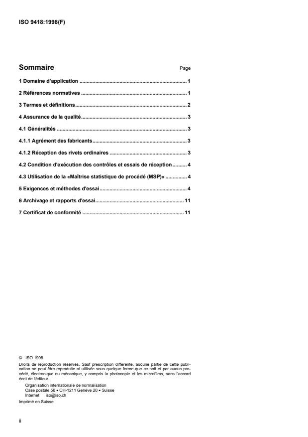 Keywords: ISO 9418, aerospace rivets, solid rivets, aluminium rivets, procurement specification, quality assurance, sampling plans, double shear strength, drivability, SPC.