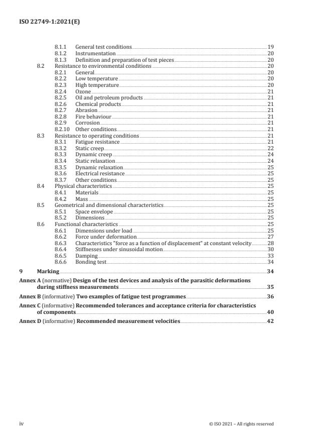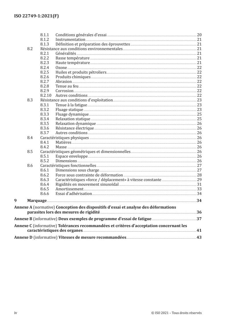 - Inspection and test methods: general test conditions, instrumentation, test-piece preparation and detailed test procedures for each characteristic. Annexes provide guidance on test device design, sample fatigue programmes, recommended tolerances and measurement velocities.