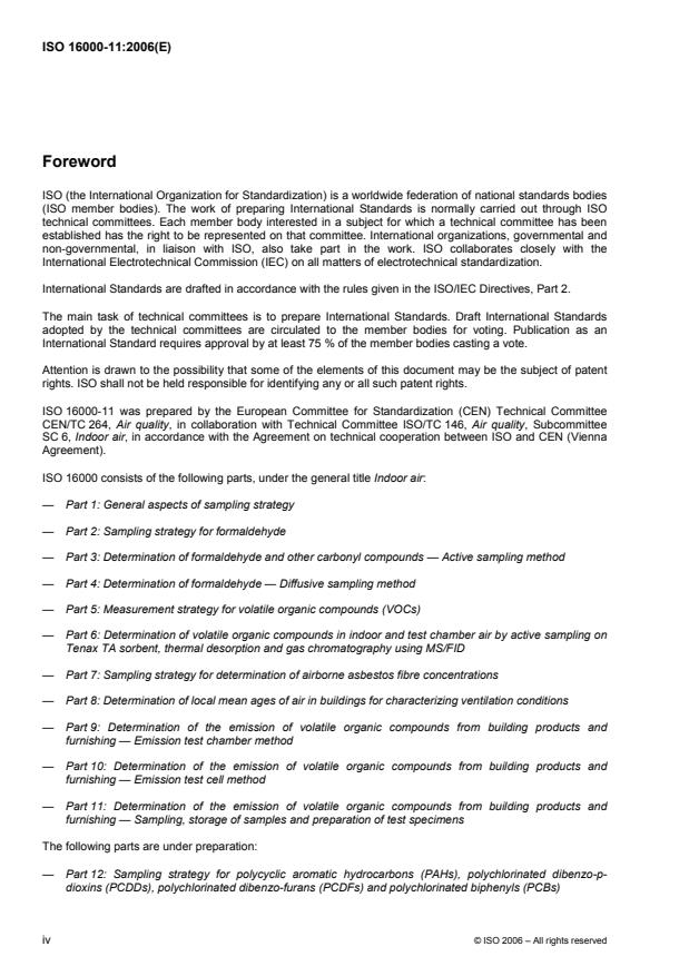 (Main)Indoor air — Part 11: Determination of the emission of volatile organic compounds from building products and furnishing — Sampling, storage of samples and preparation of test specimens