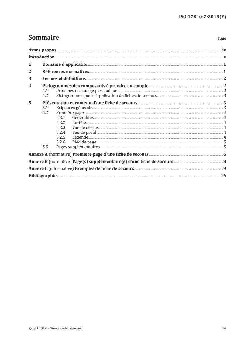 Le présent document définit le contenu ainsi que la mise en page de la fiche de secours. Il fournit les