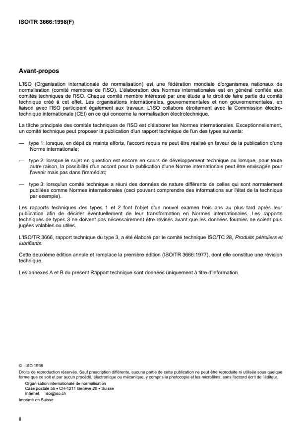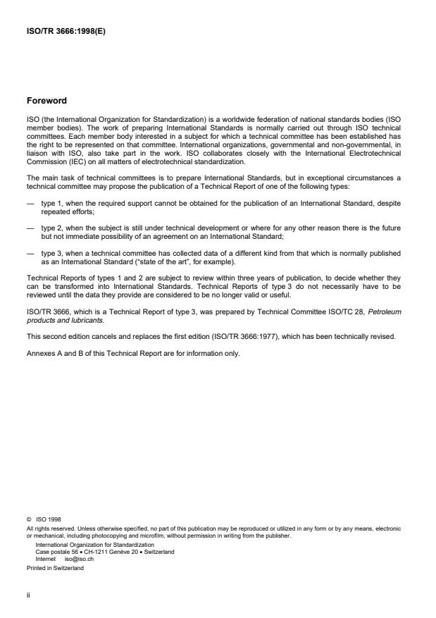 L'ISO/TR 3666, rapport technique du type 3, a été élaboré par le comité technique ISO/TC 28, Produits pétroliers et