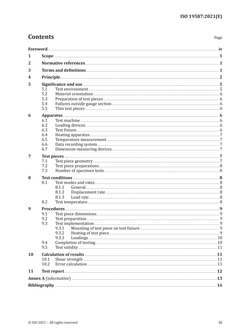 ISO 19587:2021 - Fine ceramics (advanced ceramics, advanced technical ceramics) — Mechanical properties of ceramic composites at elevated temperature in air atmospheric pressure — Determination of in-plane shear strength Released:1/11/2021