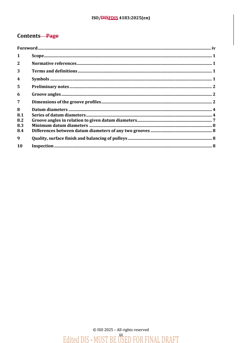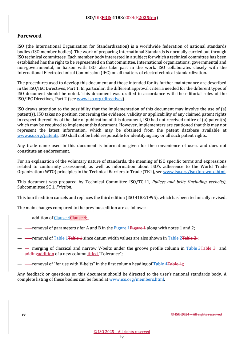 REDLINE ISO/FDIS 4183 - Belt drives — Classical and narrow V-belts — Grooved pulleys (system based on datum width) Released:10/8/2025