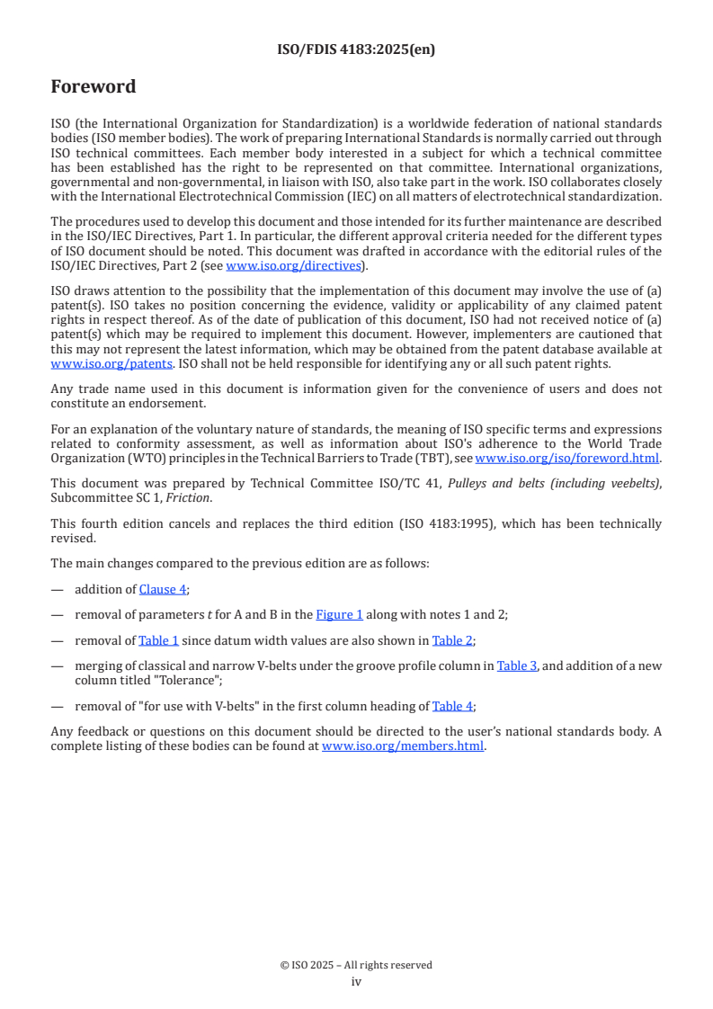 ISO/FDIS 4183 - Belt drives — Classical and narrow V-belts — Grooved pulleys (system based on datum width) Released:10/8/2025