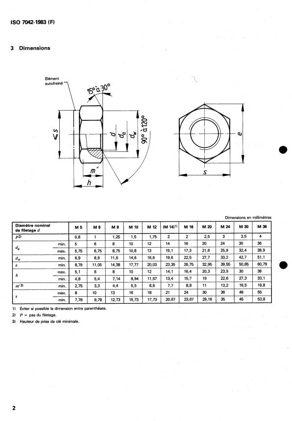 ISO 7042:1983 - Écrous hexagonaux a freinage interne, a couple préalable (tout métal), style 2 -- Classes de qualité 5, 8, 10 et 12