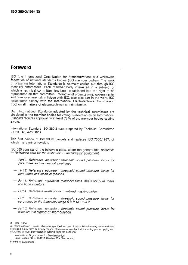 ISO 389 consists of the following Parts, under the general title Acoustics