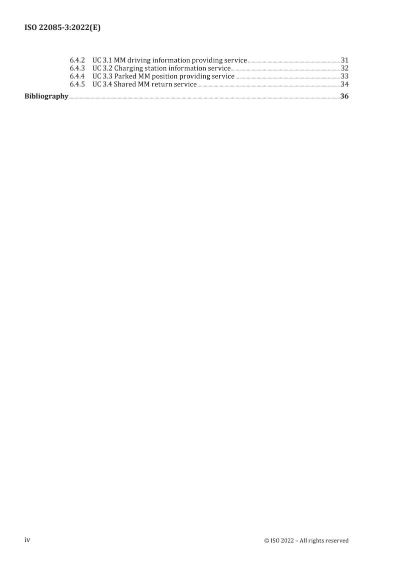 ISO 22085-3:2022 is a standard published by the International Organization for Standardization (ISO). Its full title is "Intelligent transport systems (ITS) - Nomadic device service platform for micro mobility - Part 3: Data structure and data exchange procedures". This standard covers: This document specifies the data structure and data exchange procedure related to micro mobility service applications utilizing a P-ITS-S (i.e. nomadic devices), including car sharing, parcel delivery and first-mile and last-mile connections. In addition, this document delivers related requirements for the development and operation of the service platform between nomadic devices and micro mobility with intelligent transport systems (ITS) technologies. This document defines a data structure and data exchange procedure based on the datasets and messages which are defined in ISO 22085-2.
