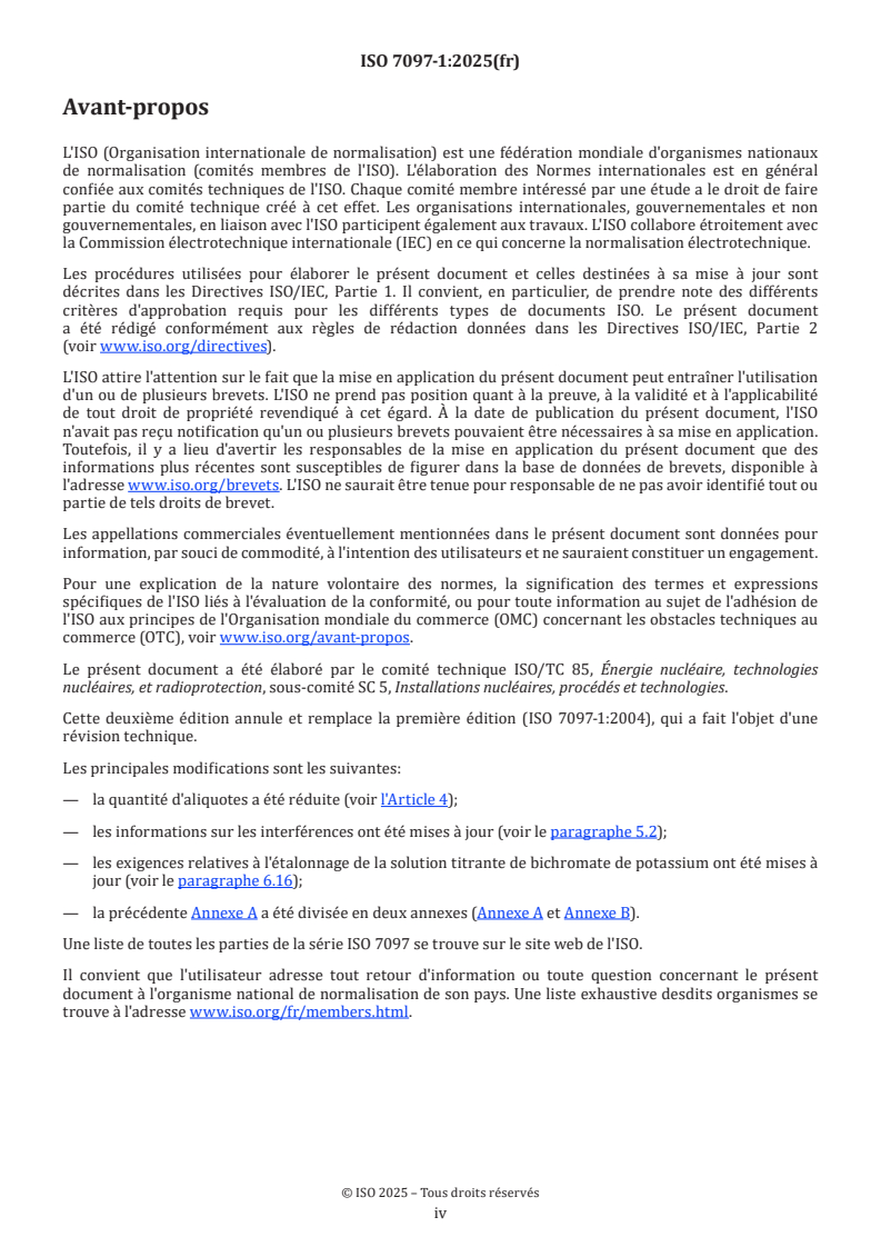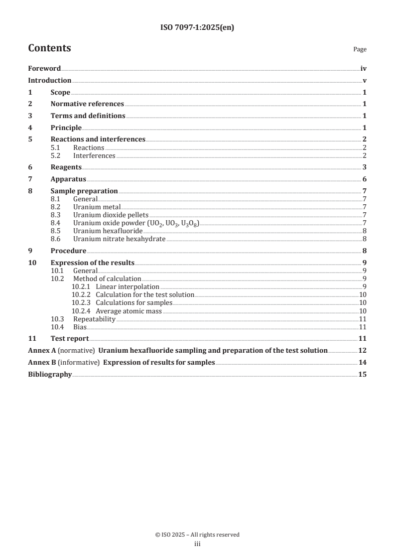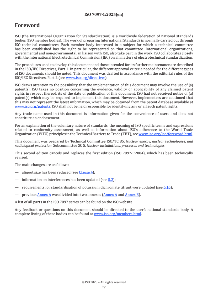 Keywords: ISO 7097-1:2025, uranium determination, iron(II) reduction, potassium dichromate titration, nuclear fuel technology, uranium hexafluoride, UO2, uranium nitrate, potentiometric titration, nuclear materials accountability.